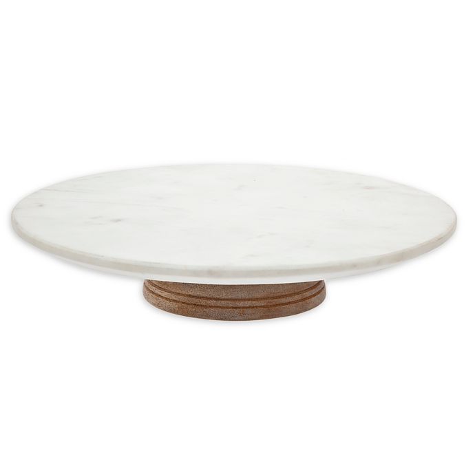 Polished white marble makes a bright and elegant base for presenting a fabulous dessert. This footed cake stand is perfect for displaying cakes pies and more each piece is unique and will have a varying marble effect. Deco 79 94519 round mango wood and marble cake stand 6 x 12 brown white. Product title the pioneer woman timeless beauty 10 inch mint green cake stand with glass cover average rating.